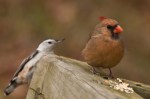 Love the nuthatch sneaking up on the cardinal. Such a capture!
