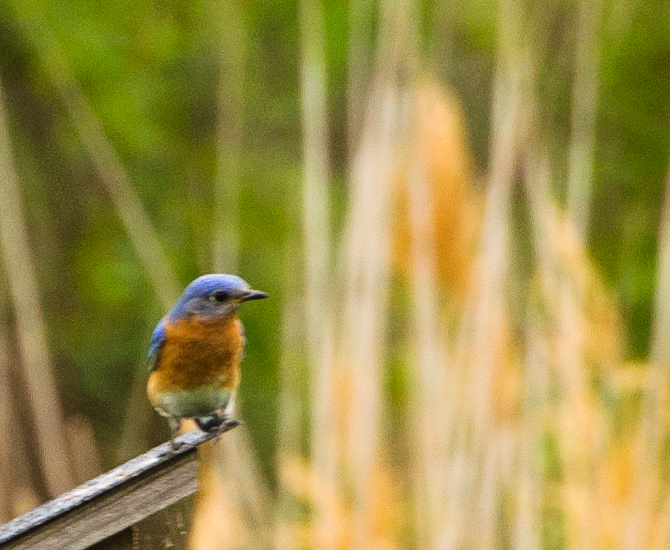 A thunderstorm put an end to my walk today, but not before I had captured a bluebird. It’s not the greatest picture because he flew away before I could creep any closer, but bluebirds are beautiful, and I don’t get too many opportunities to photograph them, so here he is in all his glory: